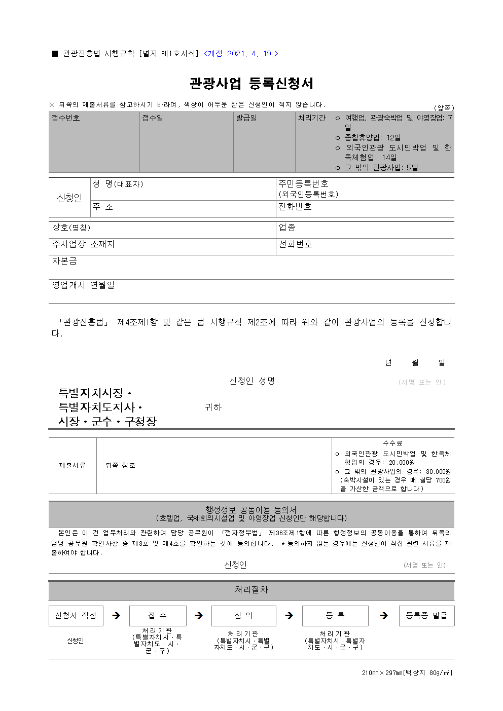 1. 관광사업 등록신청시 제출
