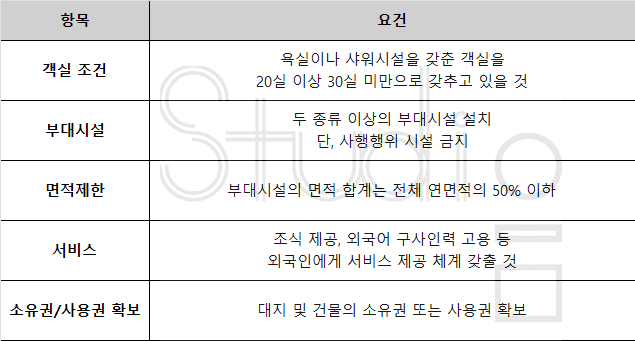 4) 조식 제공, 외국어 구사인력 고용 등 외국인에게 서비스를 제공할 수 있는 체제를 갖추고 있을 것