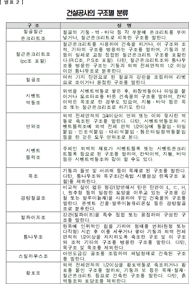 ③ 건설공사의 구조별 분류는 별표 2와 같다.
