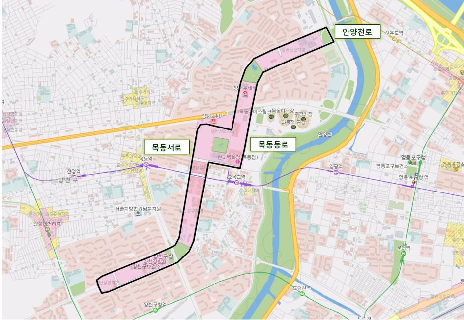 차. 목동지역: 목동동로·목동서로·안양천로를 연결한 내부지역과 그 경계도로에 직접 접하고 있는 대지