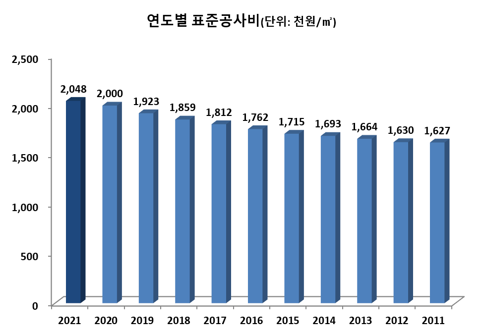 □ 2021년도 표준건축비 : 2,048,000원/㎡