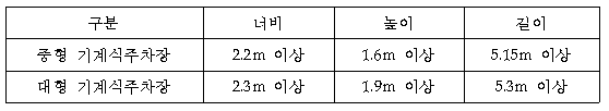 - 철거 후 재설치 시 기계식주차장의 구조와 공간 등의 한계로 현재의 규격을 적용하기가