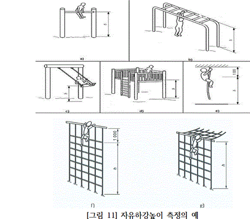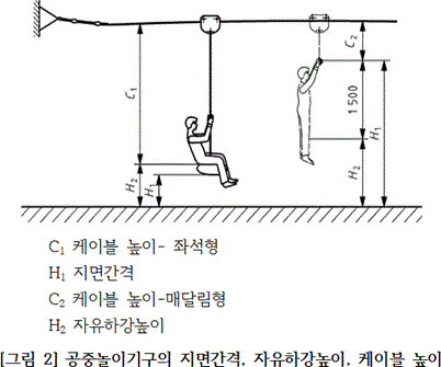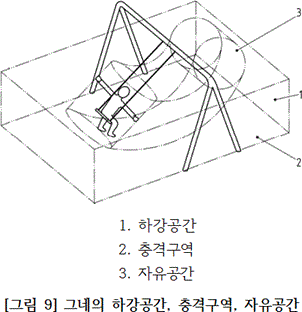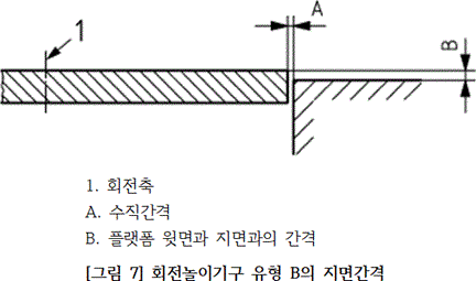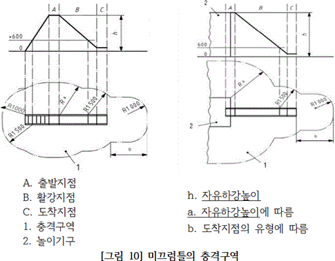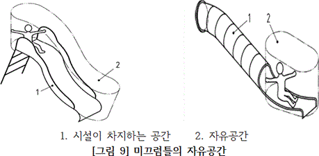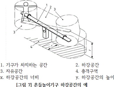 - 강제적인 움직임(놀이기구 사용 시 사용자의 의도에 따라 즉각적으로 움직임을 멈출 수 없는)이 있는 경우, 하강공간이 늘어날 수 있음
