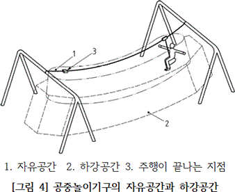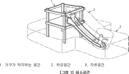 3.4 최소공간(minimum space) : 놀이기구를 안전하게 사용하기 위해서 필요한 공간, 즉 안전구역(safety zone)을 의미함 (기구가 차지하는 공간 + 하강공간 + 자유공간) (그림 1 참조)