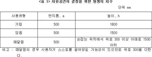비고 1 : 특정한 경우 자유공간의 치수가 바뀔 수 있다. 이에 대한 사항은 기구 종류에 따라 부가적인 요구사항이 명시되어 있는 Ⅱ~Ⅵ의 내용에 따른다.