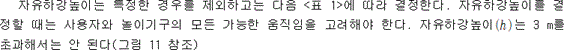 <표 1> 놀이기구 사용유형에 따른 자유하강높이