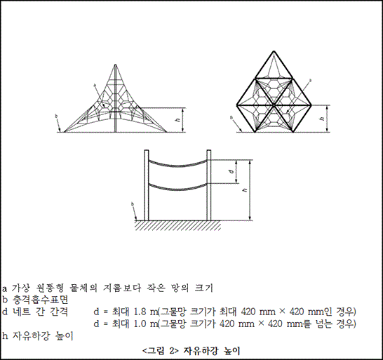 비고 2 : 아래 명시된 놀이구조물의 부품은 하강 공간 내 허용될 수 있다.