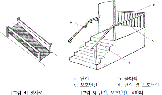 3.11 난간(handrail) : 사용자가 균형을 잡을 때 도움을 주는 가로대 (그림 5 참조)