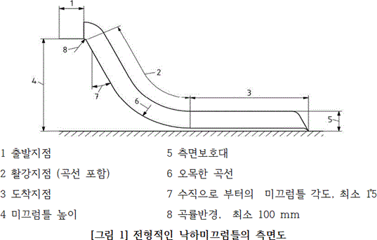 - 수평에서 측정하였을 때 경사면의 각도가 60˚ 이상인 놀이기구의 부품
