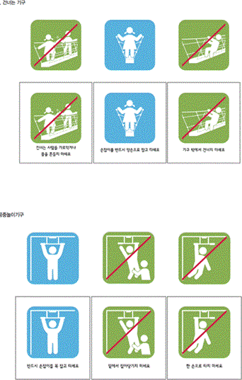 ① 무지개다리, 구름다리를 사용하는 사람을 잡아당기거나 밀지 않는다.