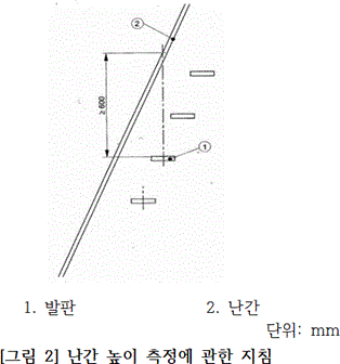 비고 2 : 세로 형태의 울타리 살사이의 공간이 60 mm 이상, 수평형태로 두 발을 동시에 밟을 수 있는 경우에는 서 있을 수 있는 표면으로 간주한다.