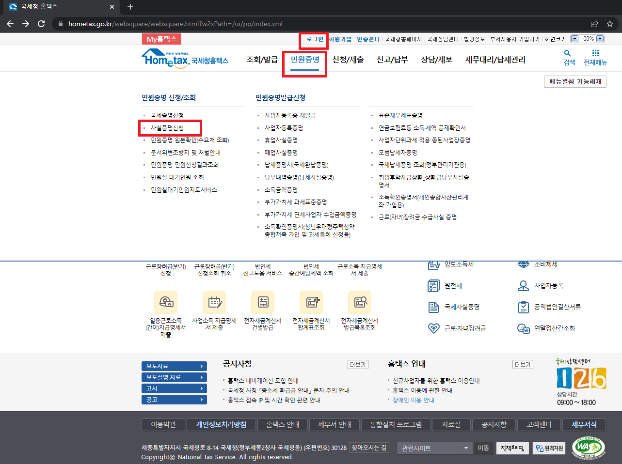 1. 먼저 홈택스에 접속하고 로그인한다.