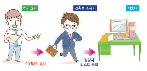 a) 허가권자가 건축물 소유자에게 점검대상과 관리점검기관을 통보