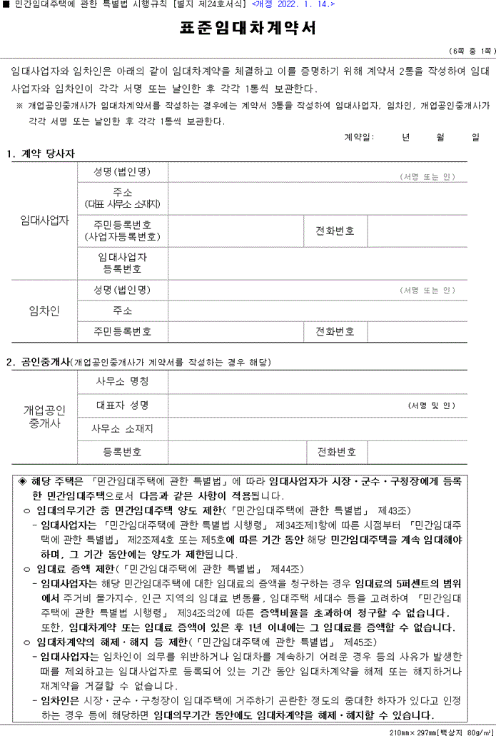 반드시 표준임대차 계약서(6페이지)로 작성해야함