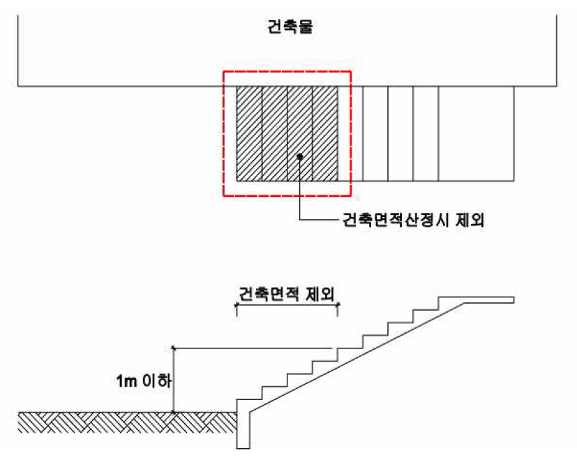 : 개방형 외부계단의 경우에는 마감 끝선에서 1m 후퇴한 부분 제외