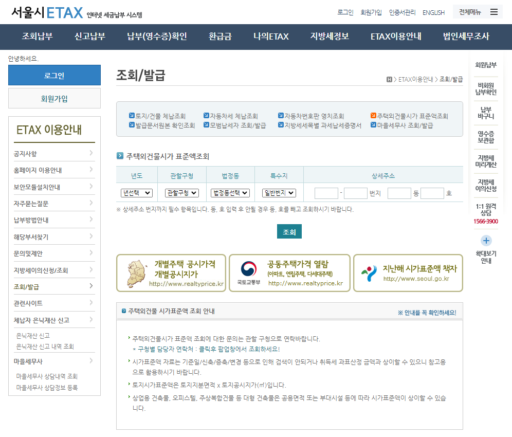 조회/발급 < ETAX이용안내 | 서울시ETAX