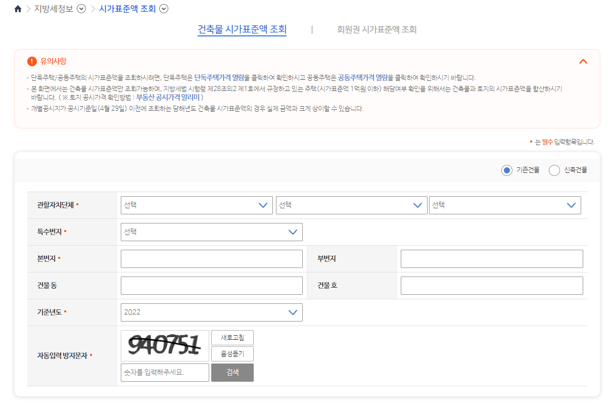 1. 주택의 경우 부동산공시가격 알리미 사이트에 검색 가능