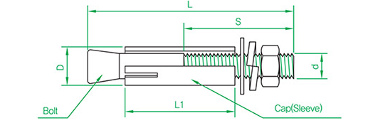 드릴로 작업한 구멍에 Cap(Sleeve)을 확장시켜서 볼트를 고정하는 방식