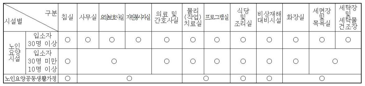 | 노인요양공동생활가정 | ○ | ○ | ○ | ○ | ○ | ○ | |||||||